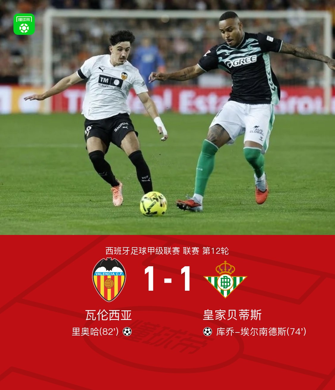 北京时间11月10日,西班牙足球甲级联赛第12轮迎来一场焦点对决,瓦伦西亚坐镇梅斯塔利亚球场迎战皇家贝蒂斯。这场较量不仅关乎两队积分排名,更折射出战术体系与临场应变能力的深层博弈。比赛中,皇家贝蒂斯凭借阿布德与库乔-埃尔南德斯的精妙配合率先破局,而瓦伦西亚则通过里奥哈的冷静推射实现绝地反击,最终1-1的比分恰如其分地展现了双方势均力敌的竞技状态。>"content="">点击查看本场比赛详细数据>